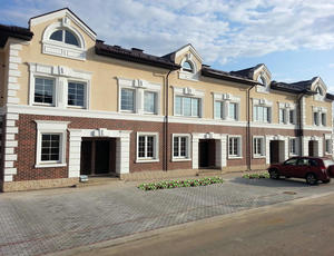 Проект таунхауса с гаражом. Проект выполнен в современном архитектурном стиле, площадь одной секции 200 кв.м.